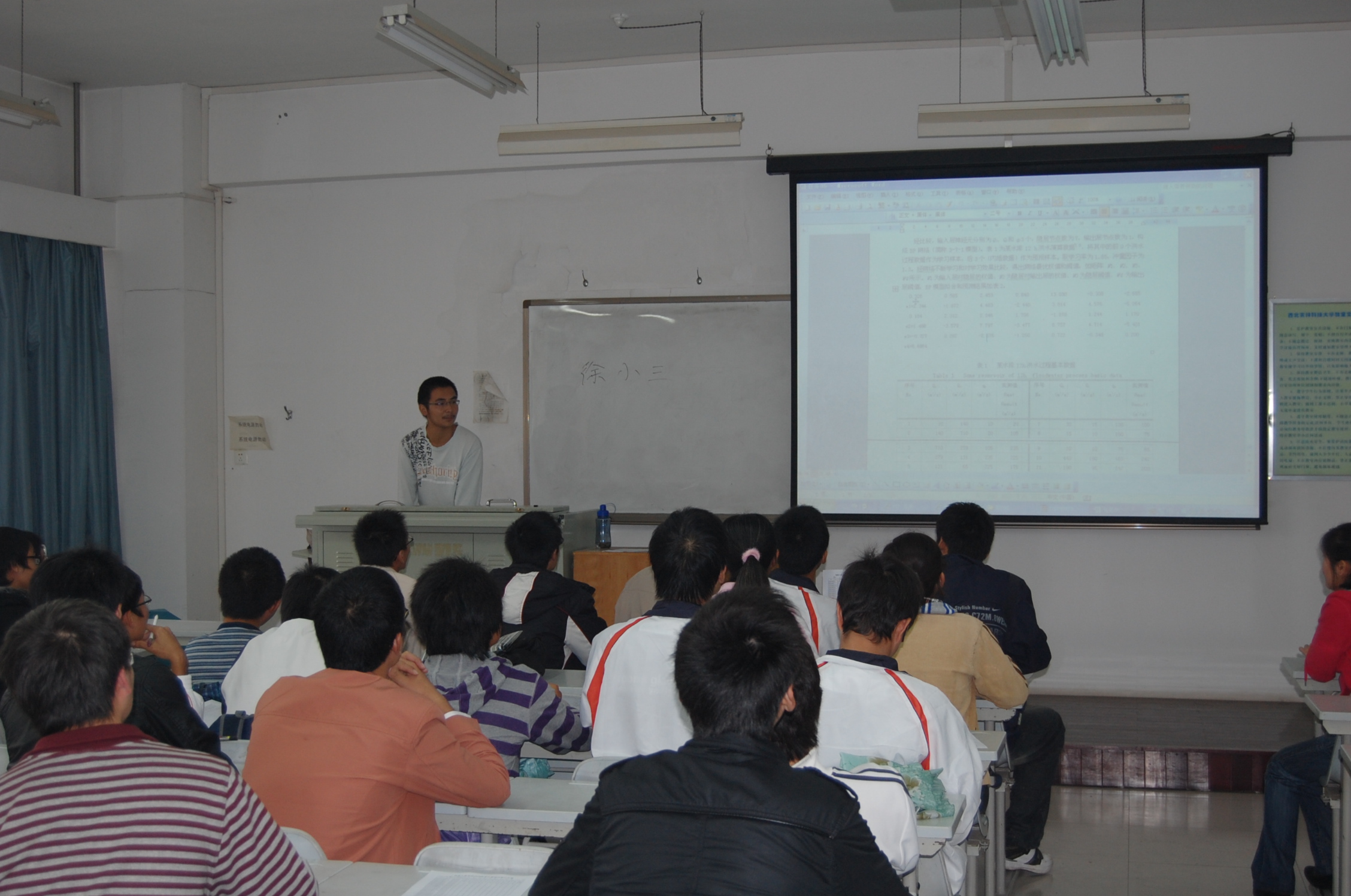 10月9日下午,北校区8206和其他8个教室里正进行着一场别开生面的课堂教学,站在讲台上的不是老师,而是学生。原来信息学院09级新生正在做计算机基础训练任务展示。学院党委樊世明书记、软件工程系主任张阳教授、党委何卫军副书记和部分班主任到场观摩。
